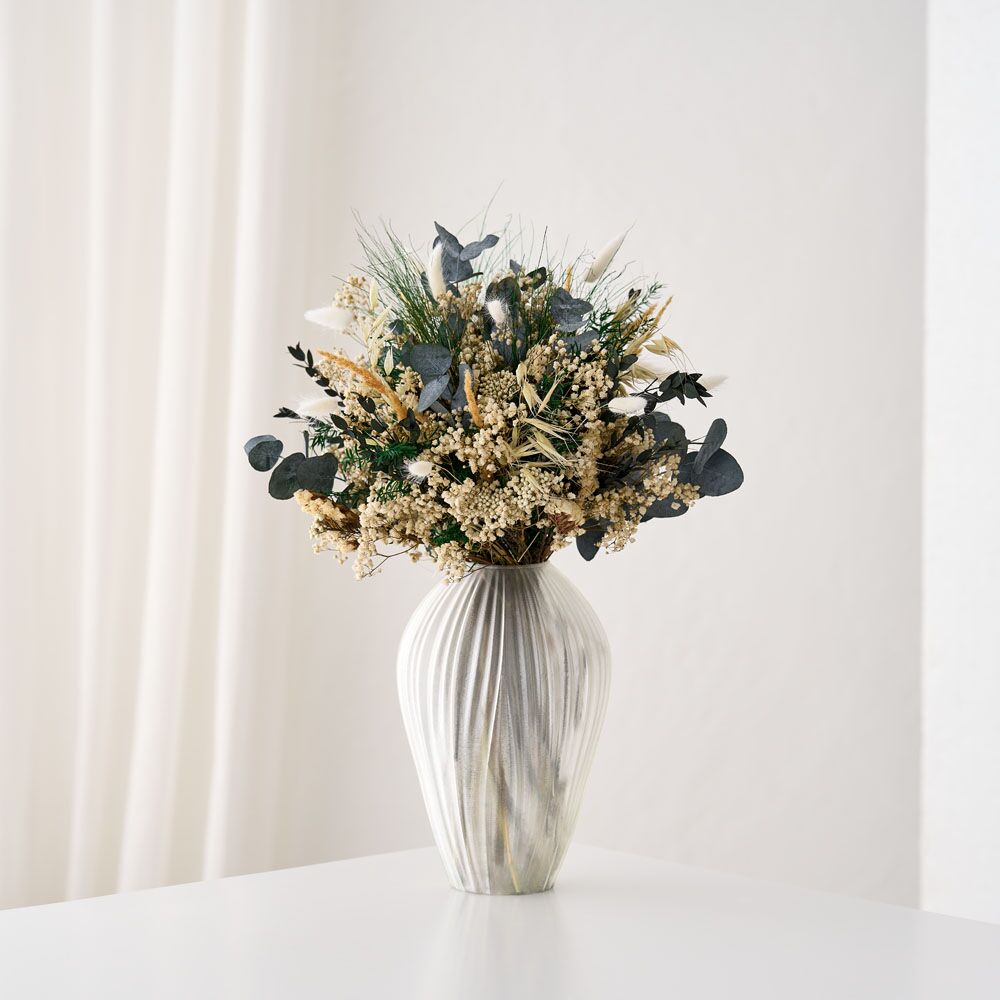 Evighetsbukett Grön och vit mix med torkade och långvariga blommor